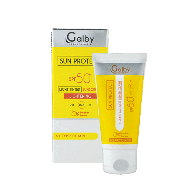 Galby Sun Protect Écran Solaire Teinté Claire (SPF 50+ sans paraben). Formule haute protection, teintée, sans paraben.