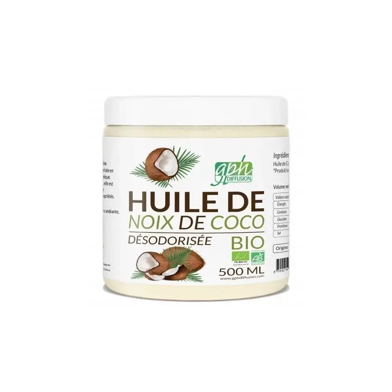 Flacon de 200 ml d’Huile de Noix de Coco. Huile végétale polyvalente, riche en TCM (triglycérides à chaîne moyenne), utilisée en cuisine et en cosmétique pour ses propriétés hydratantes.