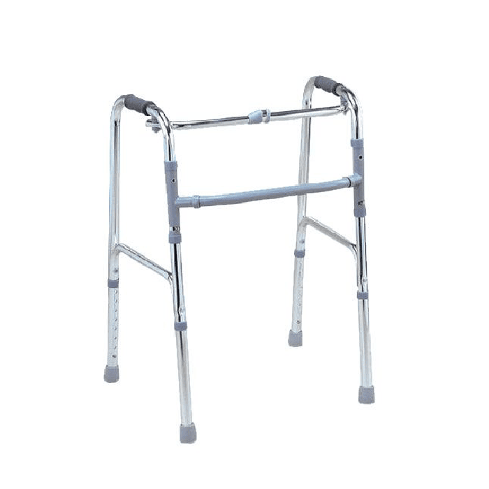 Béquille pour l’aide à la marche, réglable en hauteur, taille moyenne. UTILISATION : Utiliser pour soulager un membre inférieur. COMPOSITION : Aluminium, poignée en plastique. PRÉCAUTIONS : Vérifier que les embouts sont en bon état.