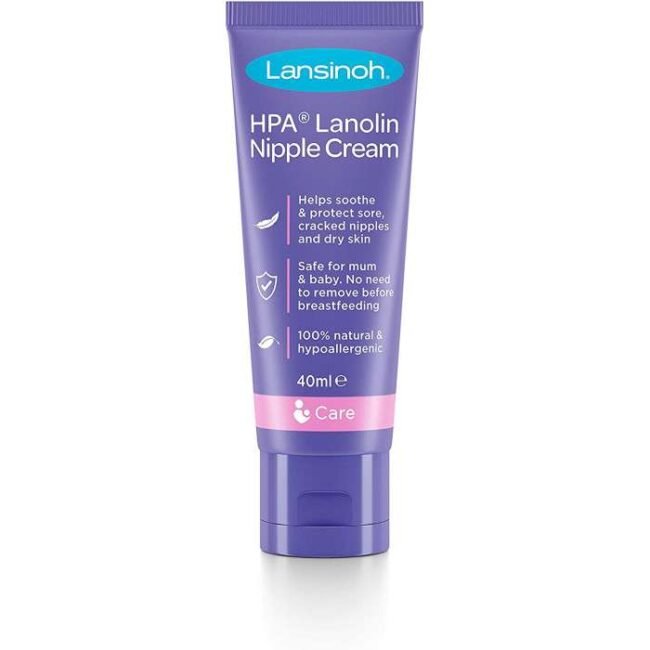 Crème de lanoline pure LANSINOH, apaisante et protectrice, pour le soin des mamelons douloureux ou crevassés pendant l’allaitement. 40ml.
