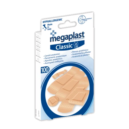 Grande boîte économique de 100 pansements adhésifs classiques MEGAPLAST.
