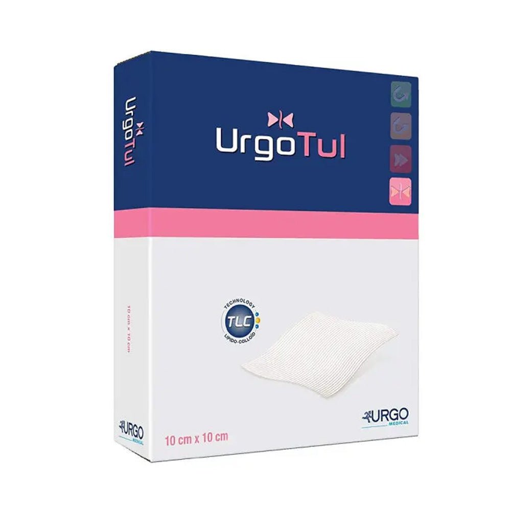 Pansement gras URGO Tulle (T.U.L.) 10x10cm, non adhésif, pour le traitement des brûlures et des plaies suintantes.